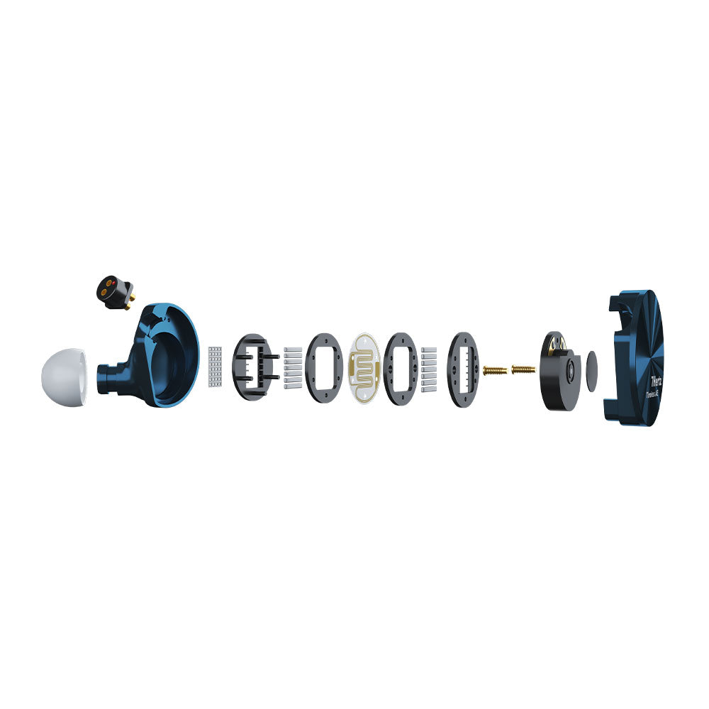 Instead of a Black theme on the earpieces, the shells now have a stunning Blue color theme that looks bright and full of life. Each earphone shell is made of a whole piece of aviation-grade aluminum CNC, with the highest strength level of hard oxidation treatment. It is durable and wear-resistant. The evenly placed sound track faceplate is like an infinity pool-timeless sound from here.