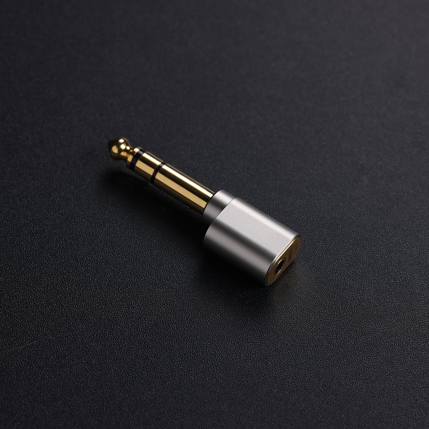 The desktop amplifier device generally comes with a 6.35mm output port, and stocks with a common 3.5mm adapter. But the quality of the included adapter may not be that satisfying, so it’s recommended to upgrade to a better adapter so as to avoid getting lossy sound quality from your device.