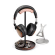 The HS270W headphone stand features a head beam and base crafted from raw wood, available in walnut and beech. The walnut version pairs with a black aluminum alloy support rod, while the beech version comes with a silver aluminum alloy support rod.