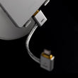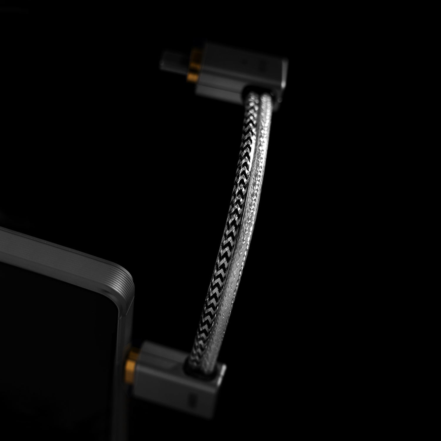 For the Nyx series data cable, we developed a double shielded parallel structure to shield current and data transmission separately. They are also differentiable in appearance: the pure silver shielding outer layer is the power transmission part, and the mixed silver and black shielding outer layer is the data transmission part.