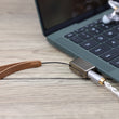 A stylish leather lanyard is thoughtfully included, offering both convenience and aesthetic appeal. This accessory not only makes the device easy to carry but also helps prevent the misplacement of small items.