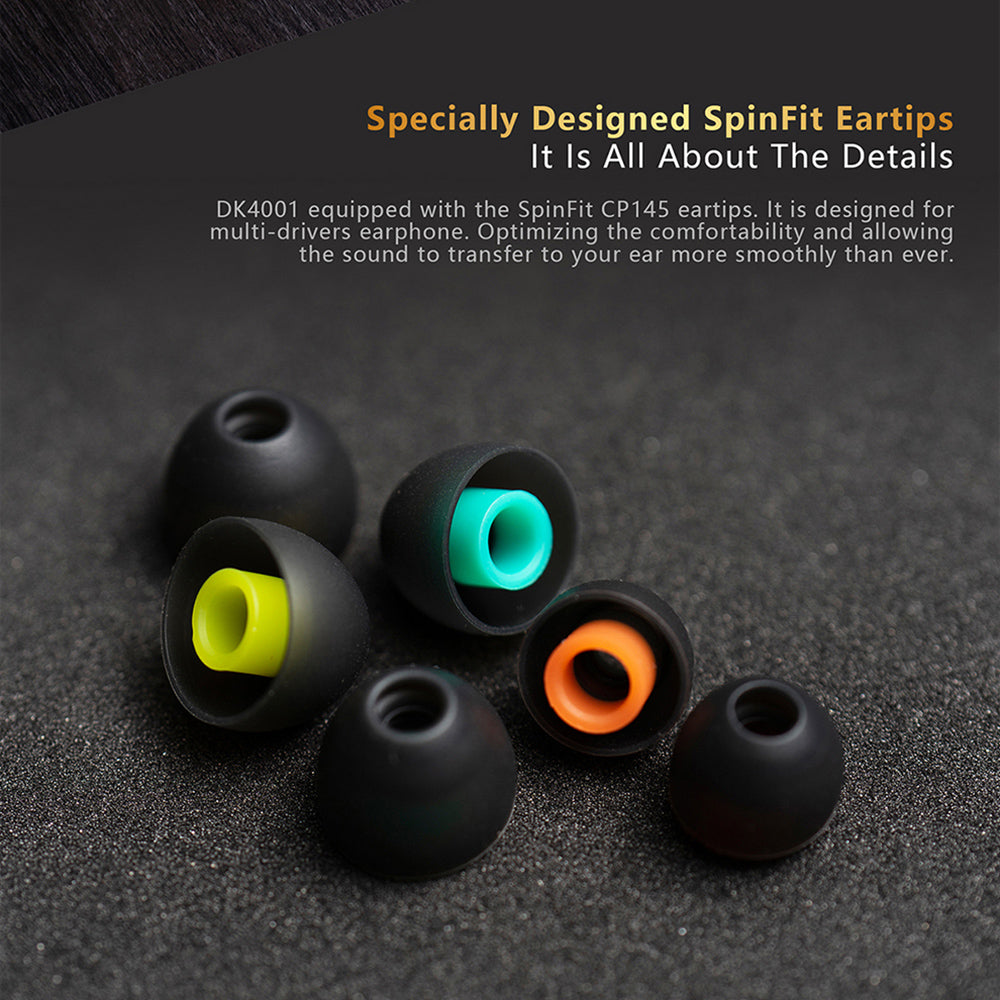 The DK4001 hybrid configuration of dynamic and balanced armature driver has been carefully engineered with premium precision-machined parts to account for the bass control and to ensure an excellent listening experience.