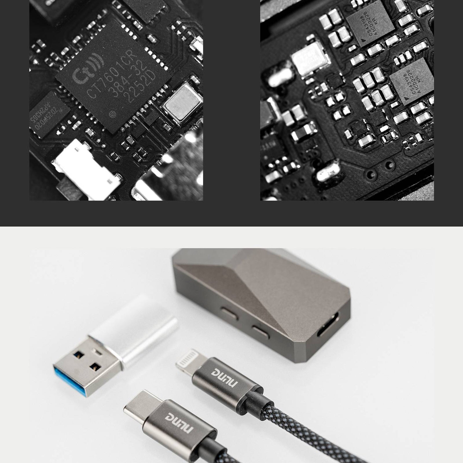 The DTC 480 boasts an all-metal body crafted from a single block of aluminum alloy using CNC precision carving. Its refined surface finish, sandblasted texture, and unique logo pattern on the bottom plate enhance its aesthetics and ensure efficient heat dissipation. Weighing just 20 grams, it is lightweight and portable, allowing for exceptional audio quality on the go.