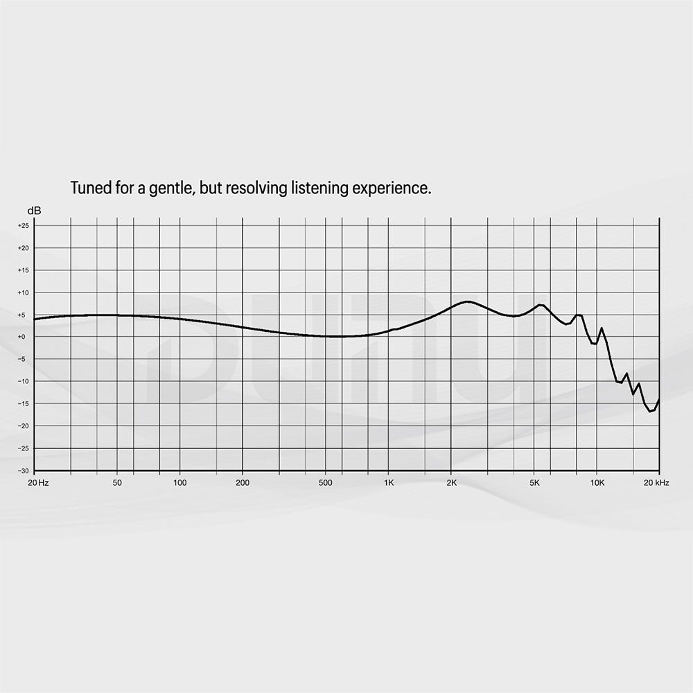 - Tuned for a gentle, but resolving listening experience
