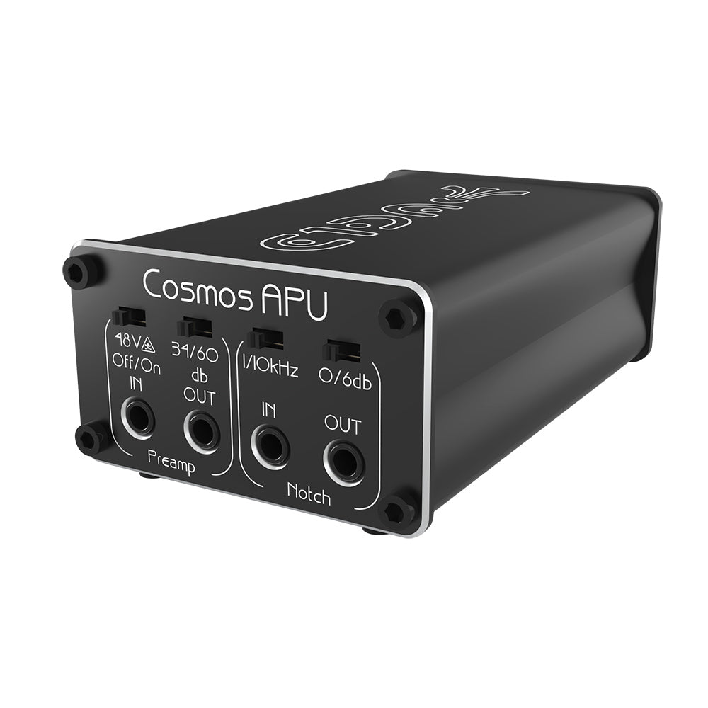 The E1DA APU Cosmos Analog. As the name implies, this is an analogue device that serves the purpose of (pre)amplification with very low noise, also providing a 1kHz notch for accurate measurements of THD+N/SINAD as we typically see in DAC reviews. Using the combination of APU + ADC, the user should be able to peer down into the noise limits and measure characteristics like dynamic range, and THD+N/SINAD with great accuracy even beyond the limits of modern state-of-the-art DACs.
