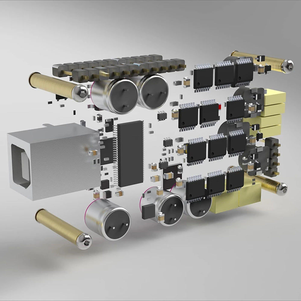 7 parametric EQs, left/right gestures control frequency, up/down gain, zoom in/out Q-factor. Also available LPF/HPF and APF for phase alignment and text form Biquad control just in case. Default standard configuration: DAC+2.5/3.5 Adapter+Type B to A Cable