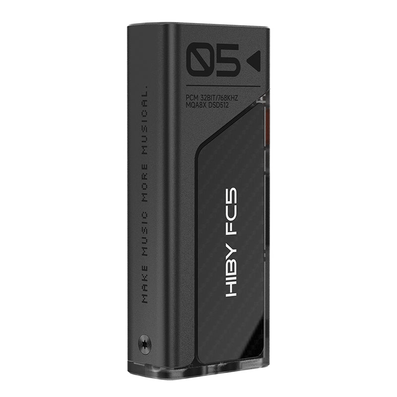 Inspired by the cyborg-like design of the HiBy R4, the FC5 features a sleek aluminum chassis combined with a translucent polycarbonate shell, forming a unique geometric aesthetic. Weighing only 21g, it is ultra-portable while standing out from the conventional aluminum dongles saturating the market.