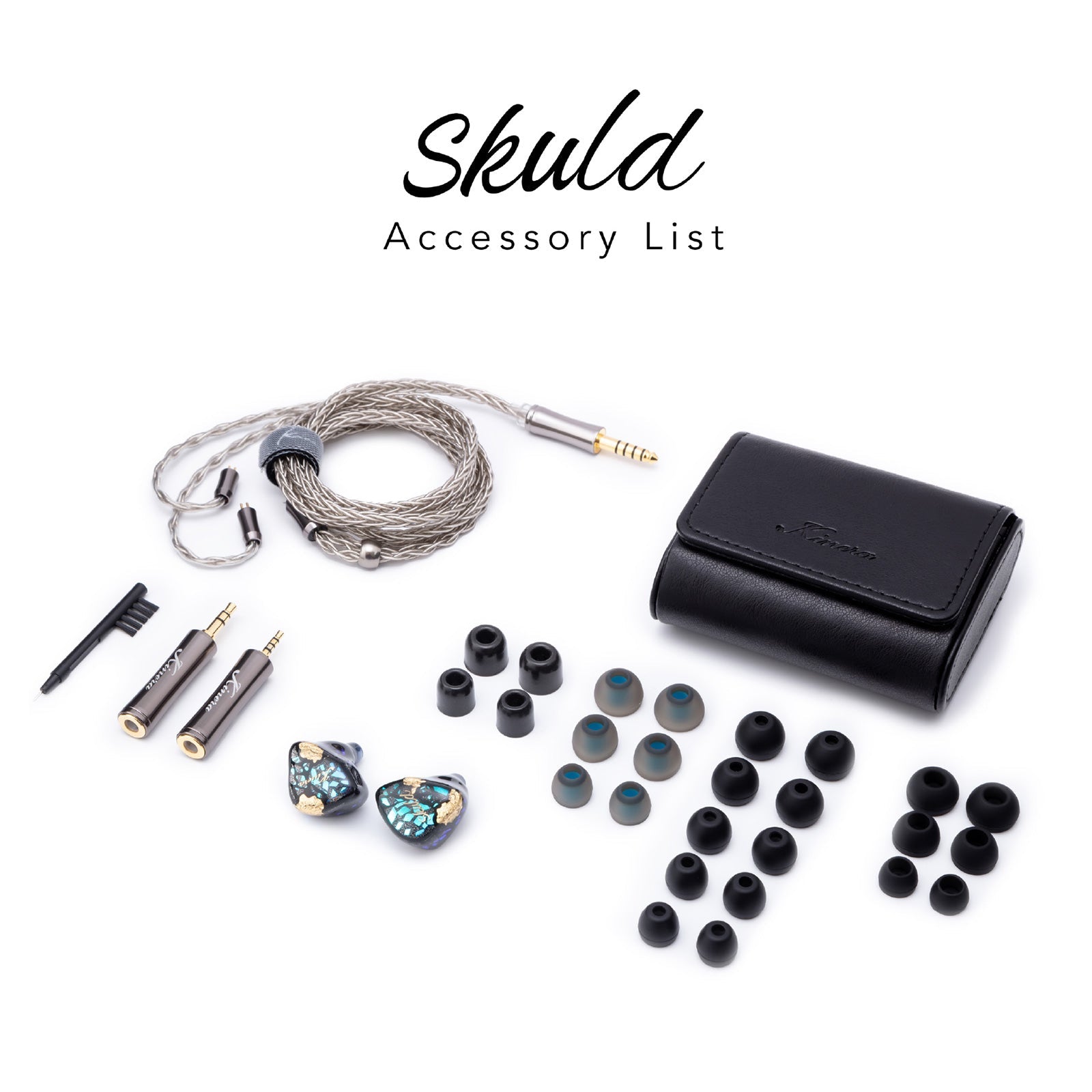 Skuld is equipped with 4 types of eartips to achieve more sound options. Each type of eartips has its own unique sound effect for you to explore and discover a much more different sound signature.