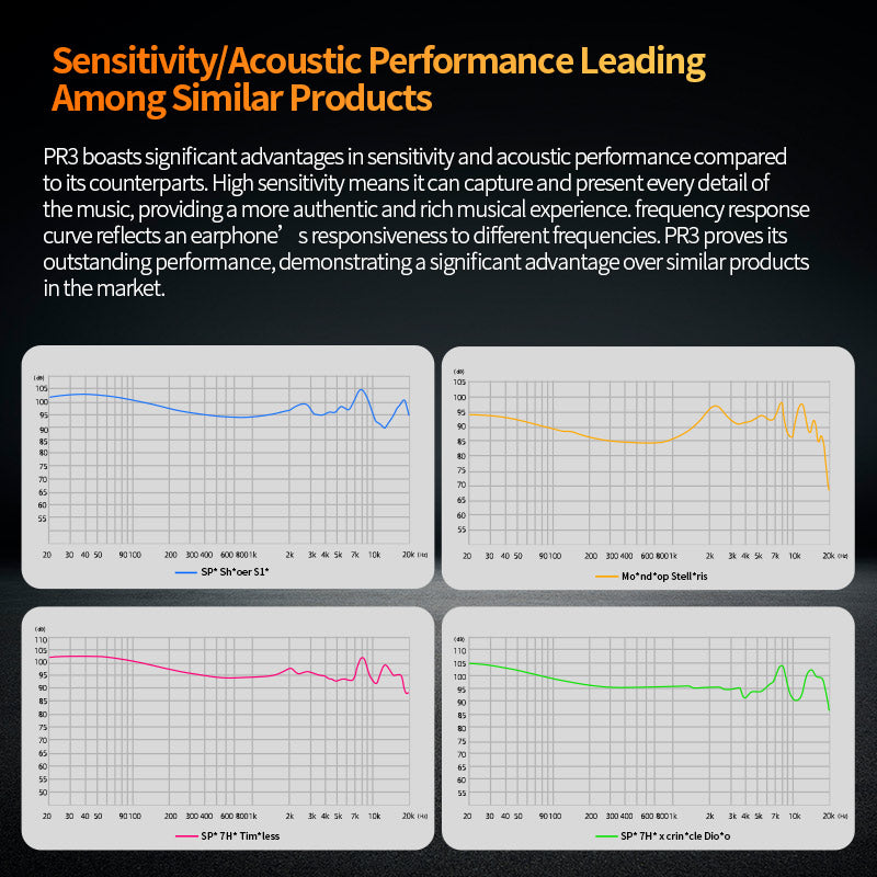 PR3 excels in delivering clear and distortion-free low-frequency performance, showcasing a balanced mid-frequency range with clear vocals and instrumentals. Its sensitivity and acoustic performance surpass competitors, providing an authentic and rich musical experience.