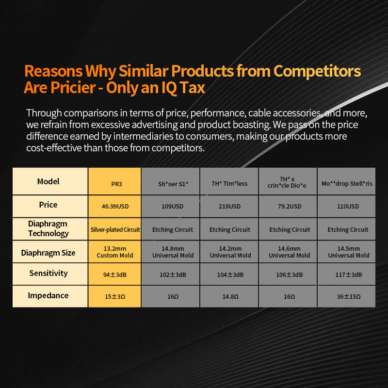 Avoiding unnecessary product boasting, KZ PR3 offers superior performance, cable accessories, and affordability. By eliminating intermediaries, we pass on the savings directly to consumers, making our product a cost-effective choice.
