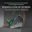 After several successful series of hybrid driver earphones, here comes the terminator, KZ ZSX. It features high quality driver configurations which includes two DWEK BA drivers for medium and high frequency, one DD for low frequency and one 30095 driver for high frequency. With this setting, the sound is powerful and comprehensive, dynamic and bright in all respects. While maintaining the previous performance, the high frequency of this model is extended.