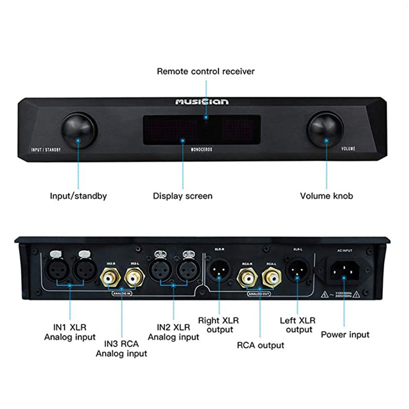 The total input of Monoceros is up to XLR*2, RCA*1, and multiple audio sources can be processed together, making it easier to connect and select audio sources.