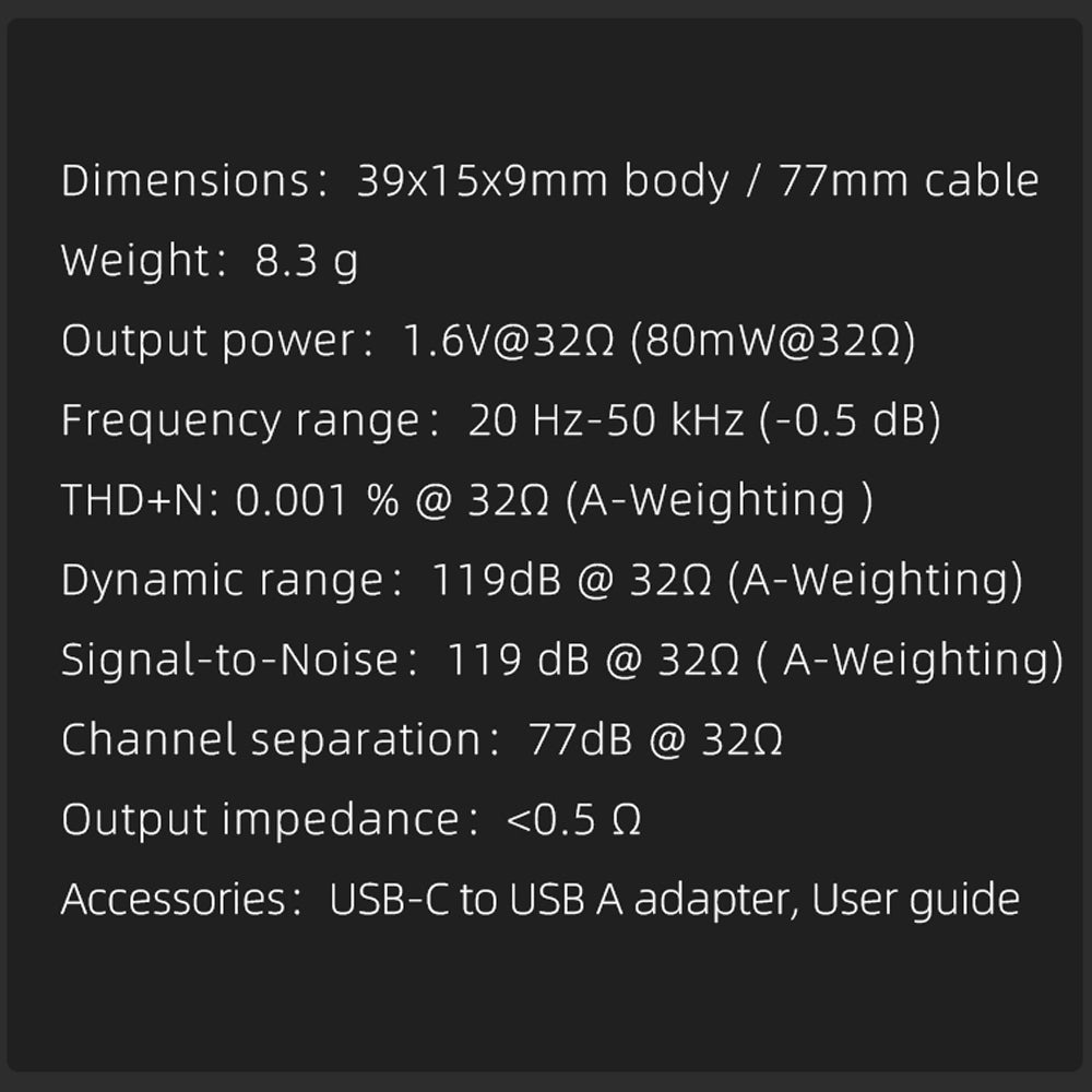 - Hi-Res Aidio Certified Dongle, support up to PCM 32/384 and DSD256