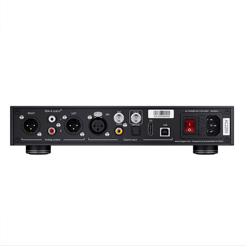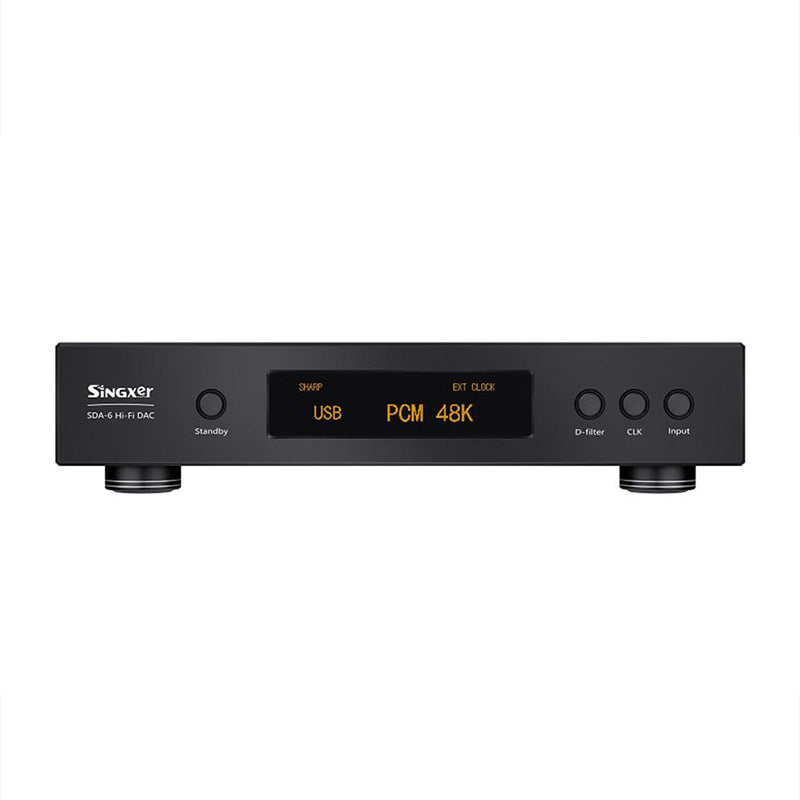 Self-developed adaptive clock system technology, built-in 4 independent ultra-low jitter audio crystal oscillators, equipped with a femtosecond-level local clock system for the USB part, the standard version of the crystal oscillator is AS-318B, and the high version is CCHD- 957. SDA-6 supports external clock input, among which USB supports 10M clock input, and other interfaces support WCK input. In USB mode, it also supports 50 and 75-ohm switchable input impedance.