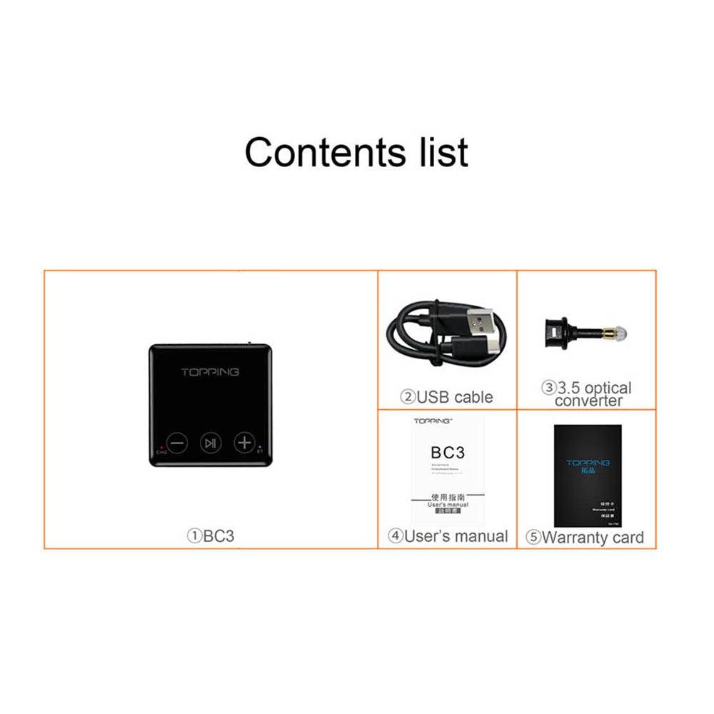 TOPPING BC3 is a compact Bluetooth decoder that supports Bluetooth 5.0 and LDAC transmission while outputting digital optical fiber, headphone jack and Line Out interface, and a built-in battery. It can used as a complement to the Bluetooth input of the decoder, as a portable Bluetooth amp, and as the Bluetooth input of a sound system. Although the TOPPING BC3 is small and exquisite, it meets your needs and gives you a different music enjoyment.
