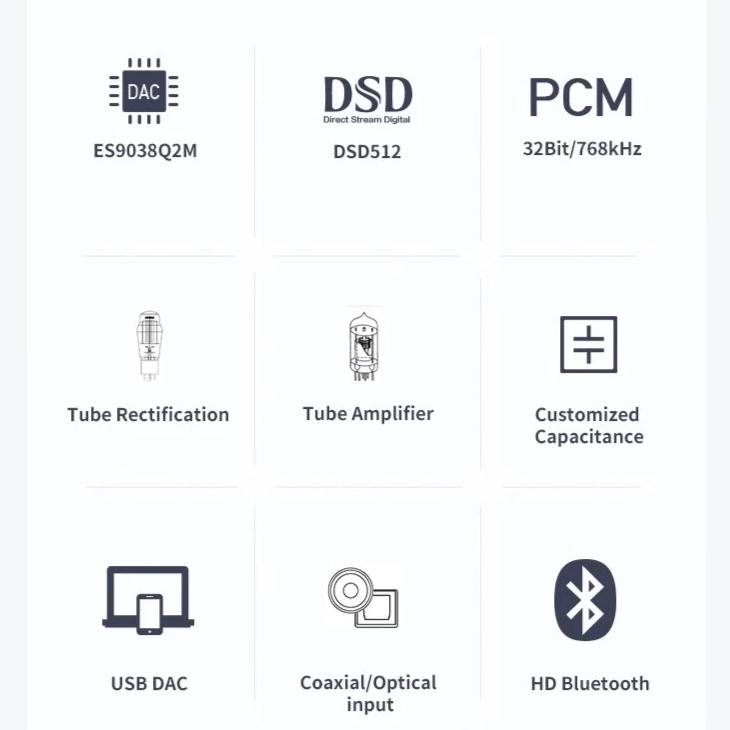 ES9038Q2M DSD512 PCM32Bit/768K Bluetooth 5.0 Tube Headphone Amplifier